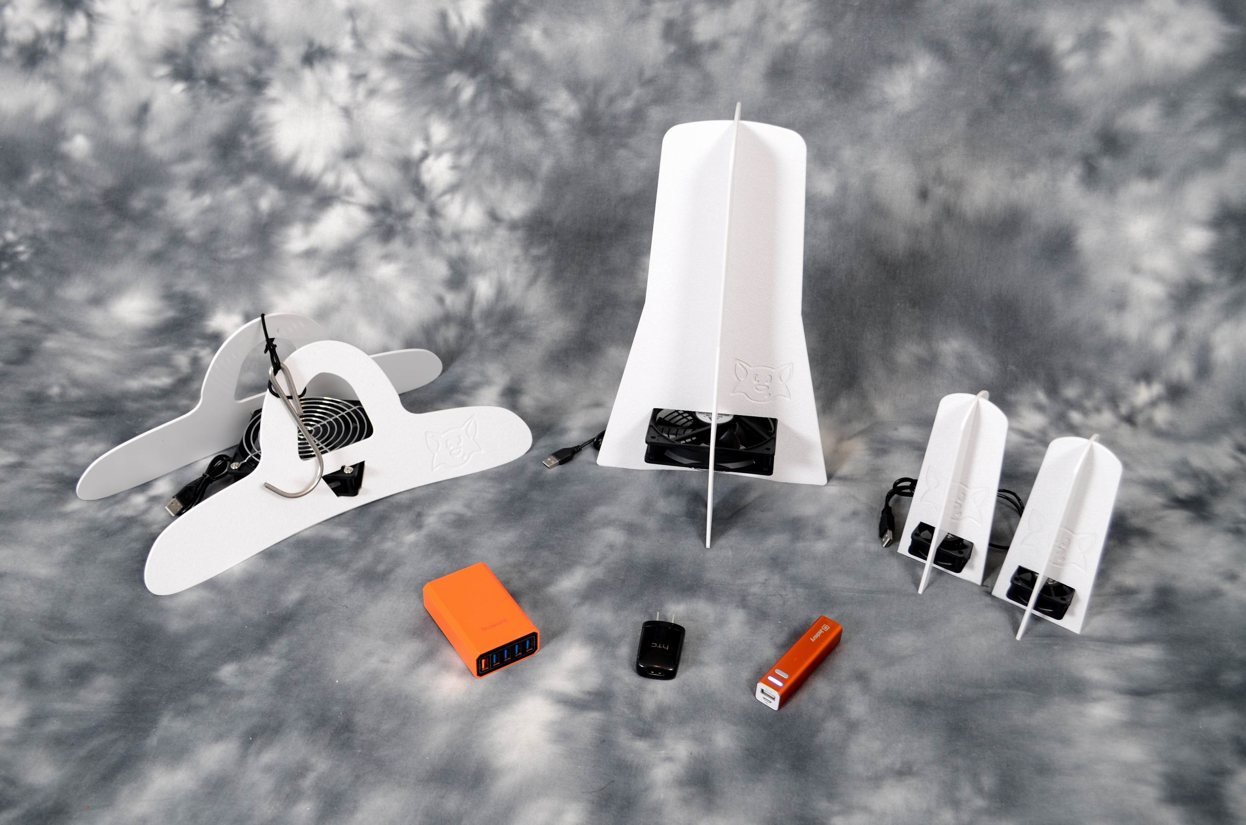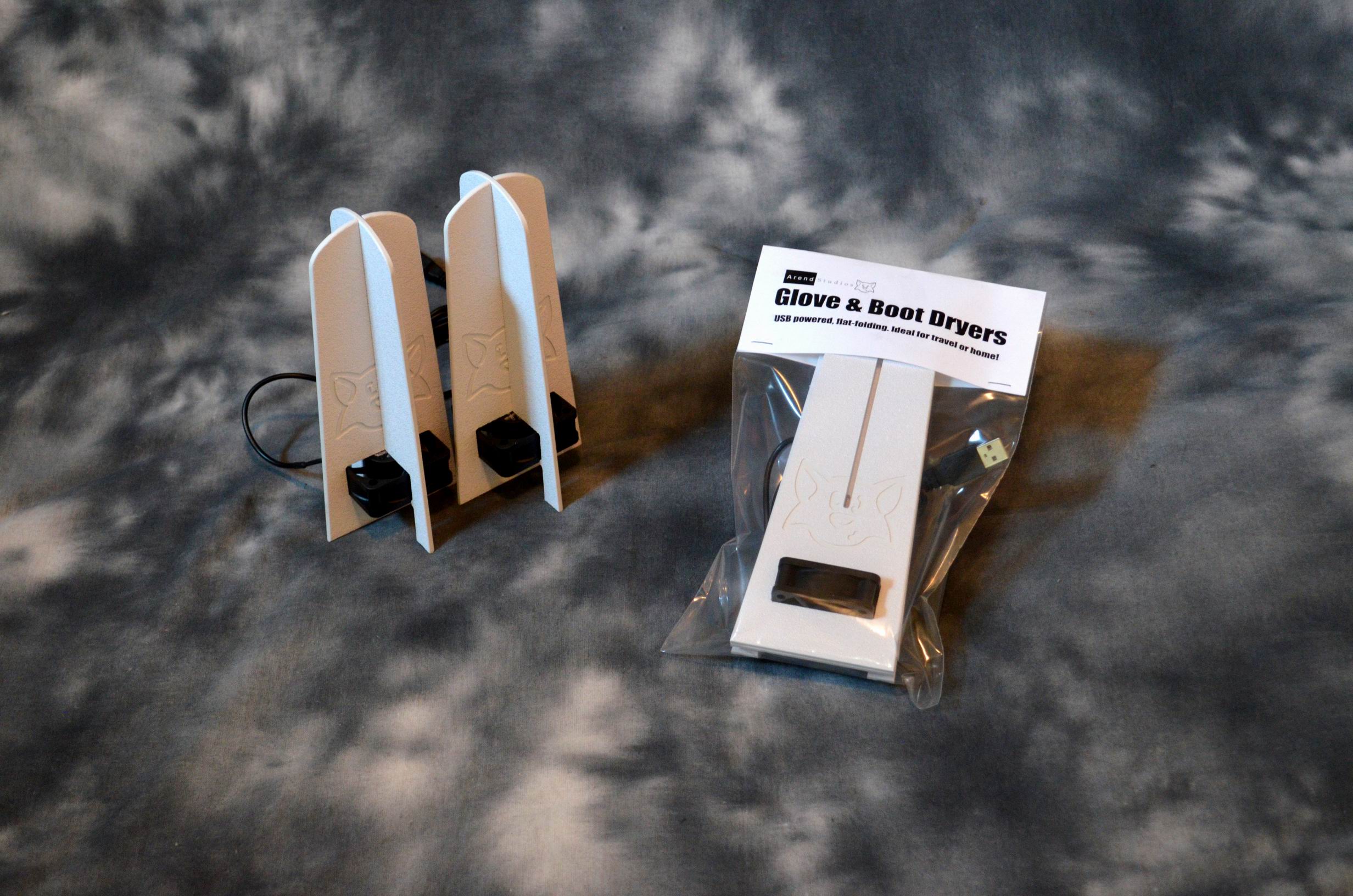 These USB powered drying stand fold flat for travel. Take them anywhere to keep your costume paws and feet funk-free and looking great.