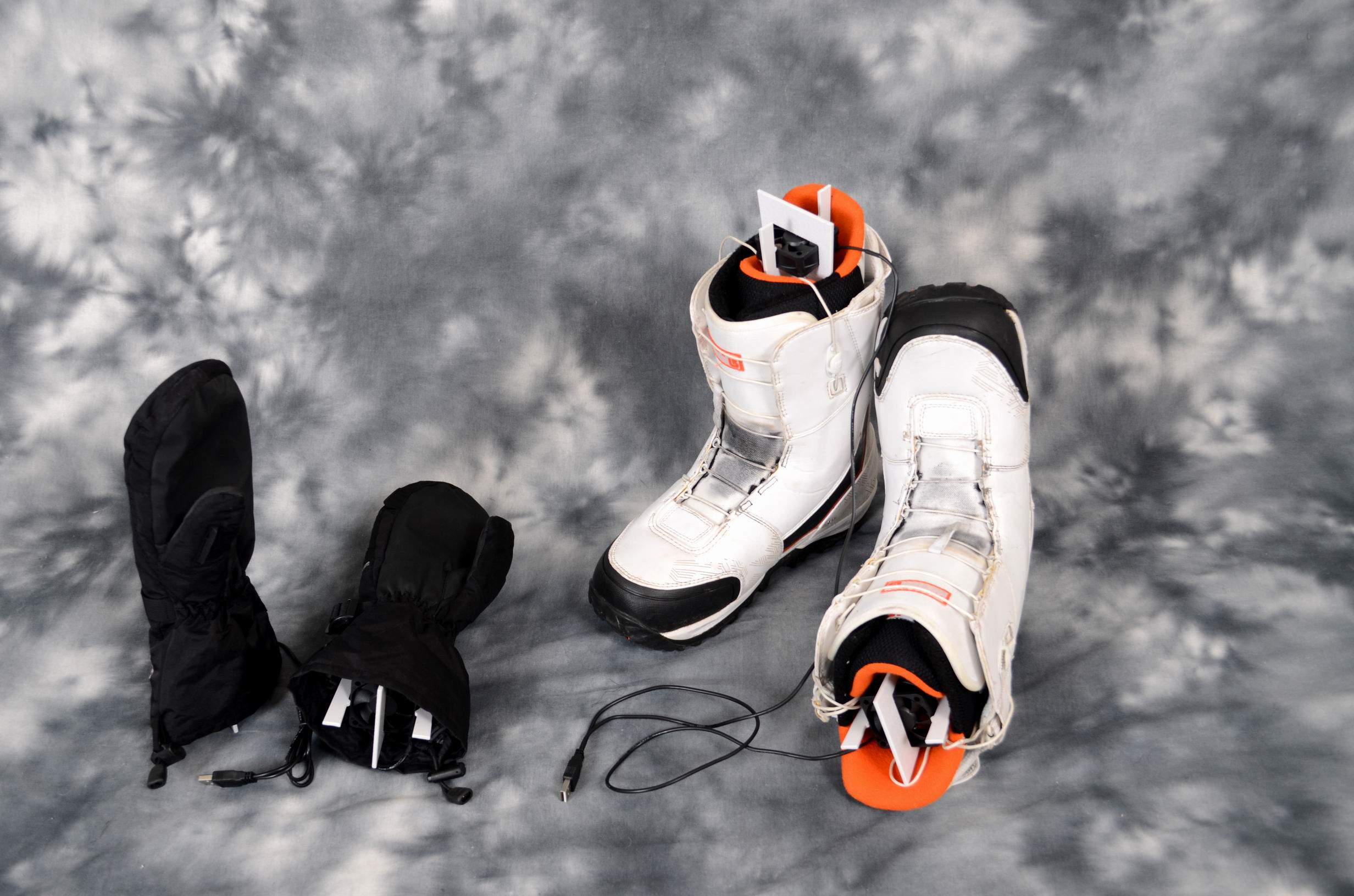 To use: slide fan halfway into slot by the logo. Slide remaining piece overtop to trap the fan. Place into item to dry, connect to a single 5v USB battery, wall charger, or power bank until item is dry.
